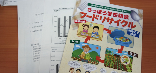 札幌市ではゴミの分別、資源化促進の一環で、学校給食を作る過程で発生する調理くずや、食べ残しなどの生ゴミを堆肥化し、その堆肥を利用して作物を栽培し、その作物を学校給食食材として子ども達が食べるという、食物の循環としてフードリサイクルが、平成18年度から取組まれています。現在小学校、中学校、特別支援学校が合計302校あるという中で、298校から2,290トンの回収が行われ、152校で堆肥活用が行われています。また、リサイクル堆肥を使用した作物は平成25年度実績で、レタスが277校に1〜2回、4.2トン、玉ねぎが全学校に4週間、66.9トン、とうもろこしが201校(子学校含む)、25,362本、かぼちゃが10校(子学校含む)、161キロ、提供されています。フードリサイクルの取組みについては連絡会議が設置され、教育委員会、環境局、経済局が関わっていますが、庶務は教育委員会が担当しています。これは「子ども達の教育のため」に取組むことから、環境局ではなく、教育委員会にとなったと言います。この取組みを通じて子ども達は、感謝して食べるという意識を持ったり、食べ残しが減ったり、ゴミの分別意識が高まったりと、食育上の成果が上がっていると言います。