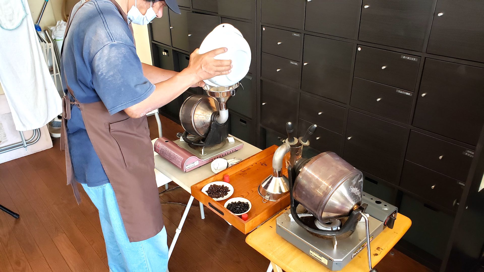 出発点となった作業所のレジネスでは、コーヒーの生産が行われています。もともとの法人設立段階では、「Peer Cafe」として、当事者同士で運営するカフェがスタートでしたが、途中からコーヒーの製造、販売の比重が大きくなり、現在はカフェ経営はなく、事務所兼作業所として事業が行われています。視察の調整段階から、作業現場も見てほしいと理事長からご提案を頂いて、午後の作業が始まる13時にお邪魔しました。13時にはまず、利用者のみなさんによる会議から始まります。今日の利用者は10名。それぞれが自分の体調などを伝えた上で、在庫確認や、作業の優先順位付けを行い、作業の分担を利用者自らで決めていきます。開始後も、利用者同士が声を掛け合いながら作業が進みます。これは、理事長がレジストを立ち上げた原点による運営手法です。