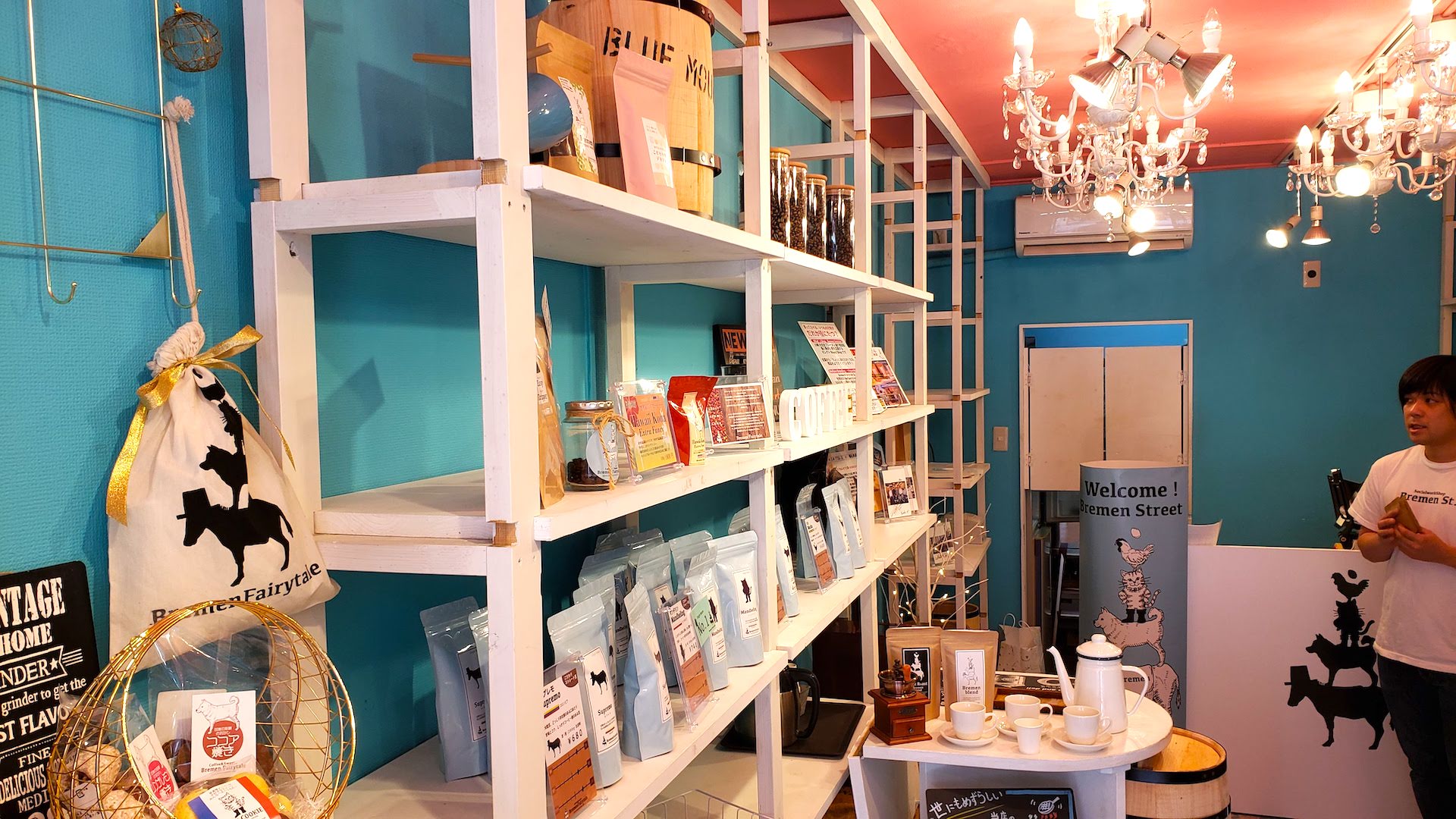 今回視察にお邪魔したのは、レジストさんが元住吉のブレーメン通り商店街に軒を連ねる、「Bremen Fairytale」というお店を知ったことがきっかけです。Bremen Fairytaleは、レジネスで製造されているコーヒーの他、全国の福祉作業所で製造されたお菓子やお茶などの商品を取り扱う、福祉のアンテナショップとなっています。その特徴は、店舗の内装や、商品のデザインを向上、統一させることで、魅力ある商品づくりと、店舗づくりに取り組んでいることです。店舗経営は、福祉事業ではなく自主事業として、商店街の一般の店舗と同様なかたちで行われています。自社製品のコーヒーなどのパッケージデザインは、ブレーメンの名の通り童話の音楽隊をモチーフにしたデザインに統一され、手にとって見たくなるデザイン。他社製品も、ものによってはパッケージ無しで仕入れ、お店で独自のパッケージングを行うこともあります。それも商品を手にとってもらえるようにし、お店全体の統一感を演出するため。福祉事業に関係するお店であることは、ほとんど主張されること無く、お店の成り立ちを知らなければ、福祉を感じること無く買い物をして帰っていけるつくりになっています。