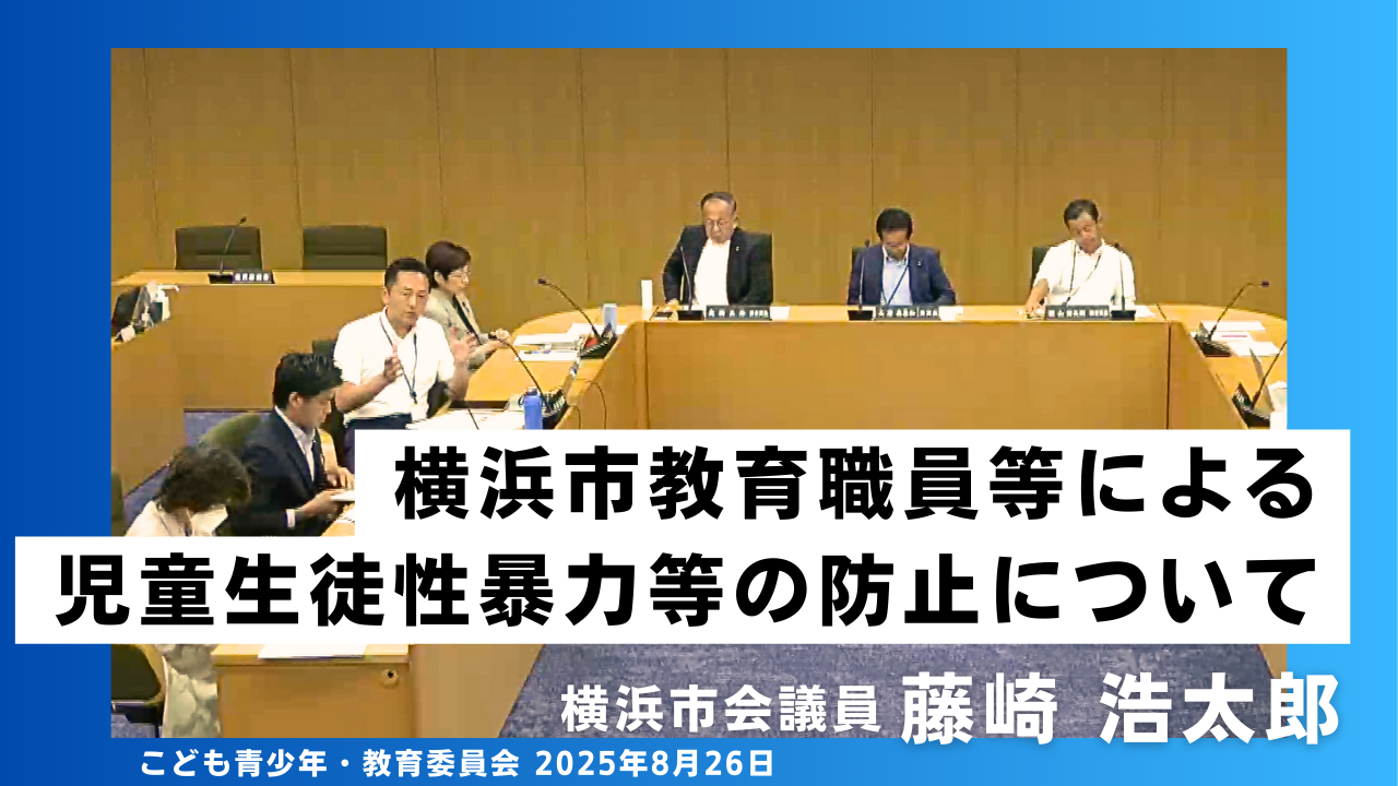 8月26日(火)、横浜市会令和7年度こども青少年・教育委員会におきまして、教育職員等による児童生徒性暴力の防止についての質疑が行われました。