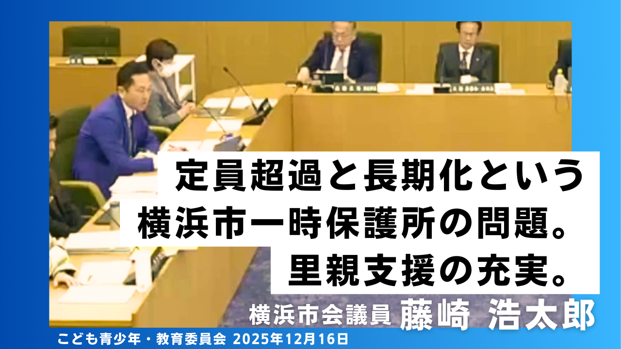 定員超過と長期化という横浜市一時保護所の問題。里親支援の充実。 - 2025.12.29